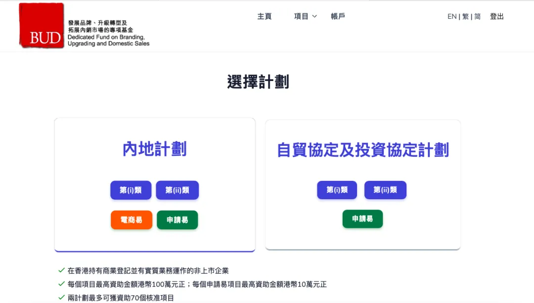 香港政府支持香港企業(yè)拓展內地市場,港府推出的BUD專項基金,專為助力香港企業(yè)拓展市場、提升品牌及升級轉型而設。基金下增設100萬「電商易」把握拓展內地電商機會!